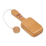Houten instrumenten zijn versierd met kleurrijke patronen, die hun esthetiek benadrukken.