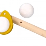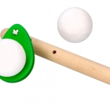 Een leuk en eenvoudig blaasspel van GOKI, waarbij je door in het houten pijpje te blazen de zwevende bal zo lang mogelijk in de lucht houdt. Een geweldig hulpmiddel voor ademtraining, logopedische ondersteuning en coördinatie. Afmetingen blaaspijpje 15 × 5 cm, bal Ø 3 cm. Geleverd in een mix van kleuren.
