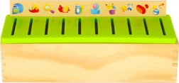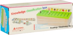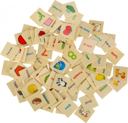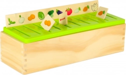 Dit slimme houten spel ontwikkelt het visuele waarnemen, de concentratie en de oog-handcoördinatie. De taak is om het juiste kleine kaartje met afbeelding te kiezen en in de sleuf onder het overeenkomende motief op de grote strook te schuiven. Dankzij de duidelijke illustraties (cijfers, vormen, dieren, fruit, voorwerpen) oefenen kinderen benoemen en sorteren.