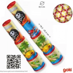Duik in de betoverende wereld van kleuren en vormen. De piratenkaleidoscoop verandert elke blik in een fascinerend mozaïek dat de fantasie en fijne motoriek van kinderen prikkelt. Dankzij de robuuste uitvoering van metaal en plastic is hij geschikt voor dagelijks spelen, zowel thuis als onderweg.