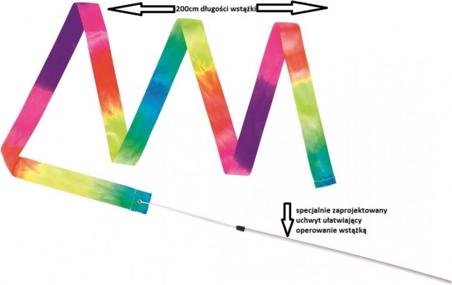 Het gymnastieklint met stok in regenboogkleuren stimuleert bewegingscreativiteit, ritme en gratie. De lichte constructie en vloeiende zwaai maken het tot een ideale hulp voor kinderen vanaf 3 jaar die de wereld van dans en gymnastiek willen ontdekken.