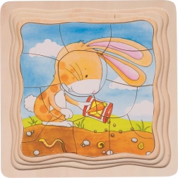 De gelaagde puzzel met duidelijke contouren stimuleert kinderen om stukjes precies te plaatsen, traint oog-handcoördinatie en probleemoplossend vermogen.