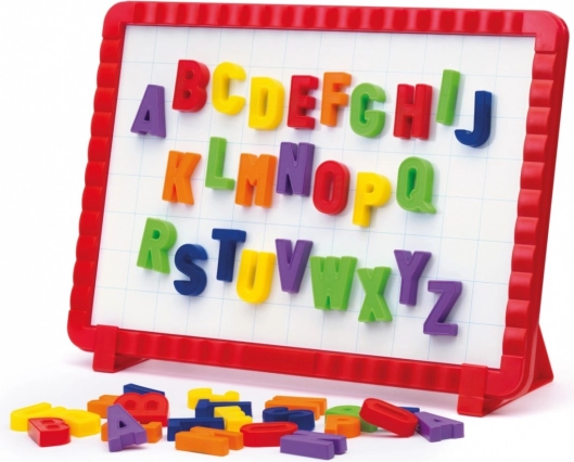 De set bevat 48 hoofdletters en een dubbelzijdig magnetisch bord.