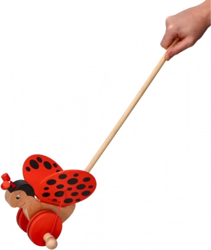 Dit klassieke houten duwspeelgoed in de vorm van een lieveheersbeestje zal zowel kinderen als ouders verrukken. Tijdens het duwen ontwikkelen kinderen hun evenwicht en coördinatie, terwijl de gemakkelijk vast te houden stok een correcte houding en een zekere stap ondersteunt. Dankzij de zorgvuldige afwerking is het speelgoed duurzaam en geschikt voor dagelijks spelen, zowel binnen als buiten.