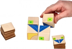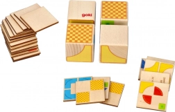 Dit ogenschijnlijk eenvoudige maar slimme didactische spel van het merk GOKI biedt 26 voorbeeldkaarten waarmee kinderen 4 houten blokken in verschillende patronen leggen. Ideaal voor kleuters en jonge schoolkinderen – elke opdracht traint het ruimtelijk inzicht, de concentratie en de geduldigheid.