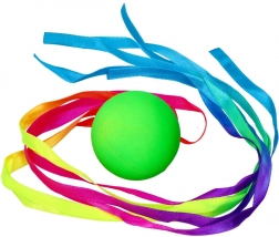 De meerkleurige lintjes die aan het balletje zijn bevestigd geven elke worp dynamiek en variatie in beweging.