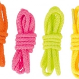 De set bevat kleurrijke houten kralen en voldoende lange koorden, ideaal voor creatieve projecten.