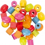 Deze prachtige set bevat diverse kleurrijke houten kralen in vele vormen en kleuren, ideaal voor het maken van armbanden, kettingen of andere decoratieve projecten. De koorden zijn 86 cm lang, wat voldoende ruimte biedt om te rijgen en te creëren naar eigen fantasie.