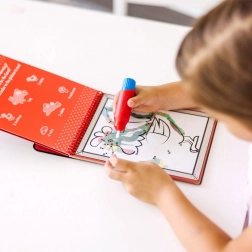 Met dit kleurboek kunnen kinderen met water schilderen zonder te knoeien. Zodra het water is opgedroogd, is het boekje klaar voor nieuwe plaatjes.