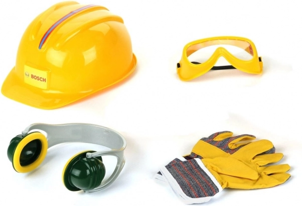 Een leuke en veilige set voor kleine bouwers van het merk Klein met BOSCH mini-licentie. Bevat een kinder helm, bril, gehoorbeschermers en handschoenen. Perfect voor doen-alsof-monteur, het stimuleren van de verbeelding en rollenspel met de nadruk op “veilig werken” op kinderniveau.