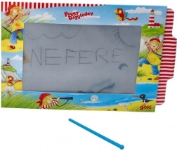 Het magnetische tekentablet Peggy van GOKI laat kinderen vanaf 2 jaar steeds opnieuw tekenen, stempelen en wissen – zonder papier en zonder vlekken. Het compacte formaat past gemakkelijk in een rugzak, waardoor het een geweldige metgezel is voor op reis, in een restaurant of in de wachtkamer.