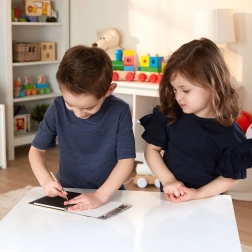 Geen verf en geen rommel – een krasstylus is genoeg en kinderen kunnen meteen overal creëren, thuis en op school.