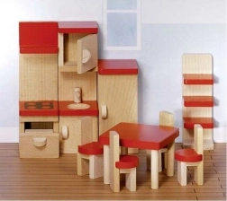 Stijlvolle keukenset voor poppen uit de serie Goki Basic met een klassiek design, massief hout en stabiele afwerking. Perfect voor poppenhuizen en voor zelfstandig spel. De verpakking bevat 9 meubelstukken, inclusief een keukenblok met een hoogte van 14,3 cm.