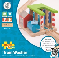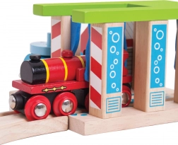 Breid je houten treinbaan uit met de kleurrijke treinwasstraat van BIGJIGS RAIL, die kinderen nog meer plezier en fantasie biedt. Dankzij de draaibare zuilen met borstels kunnen kleine machinisten bepalen of de trein alleen doorrijdt, of een echte “was”-ervaring krijgt. Gemaakt van hoogwaardig en verantwoord verkregen hout, compatibel met de meeste houten treinbanen op de markt.