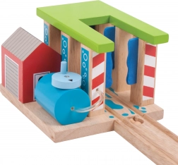 Het product is gemaakt van hoogwaardige en verantwoord verkregen natuurlijke materialen en voldoet aan de huidige Europese veiligheidsnormen. Dankzij de universele afmetingen is de wasstraat compatibel met de meeste houten rails en treinen op de markt. De trein is niet inbegrepen, wat het eenvoudig maakt om aan te sluiten op bestaande sets.