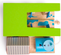 Stel de zuilen zo in dat de trein alleen passeert, of laat de borstels hem “wassen”. Kinderen zullen het leuk vinden om scenario’s te veranderen en oefenen hun fijne motoriek.
