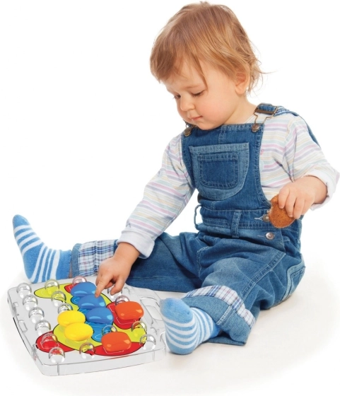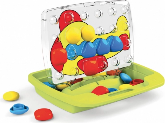 QUERCETTI Mozaïek Pixel Baby is een creatieve speelgoedset ontworpen om mozaïeken te maken door gekleurde knoppen in een geperforeerd bord te plaatsen volgens een vooraf bepaald patroon of naar eigen fantasie. Dit product helpt bij het herkennen van kleuren, het ontwikkelen van fijne motoriek en coördinatie.