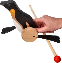 Leuke en educatieve houten trekdier pinguïn van het merk Goki is ideaal voor kleine ontdekkers. Bevordert de motoriek en stimuleert actieve beweging.
