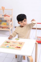 • Houten inlegpuzzel met knopjes voor gemakkelijk vastpakken en hanteren