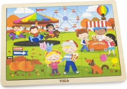 Ontdek een kwalitatieve houten puzzel voor kinderen met een vrolijke scène van een herfstkermis. Dankzij de 24 stevige stukjes en de lijst is hij ook voor jongere kinderen eenvoudig te leggen, waarbij ze spelenderwijs de oog-handcoördinatie en het herkennen van vormen en kleuren oefenen.