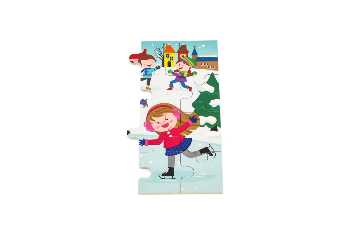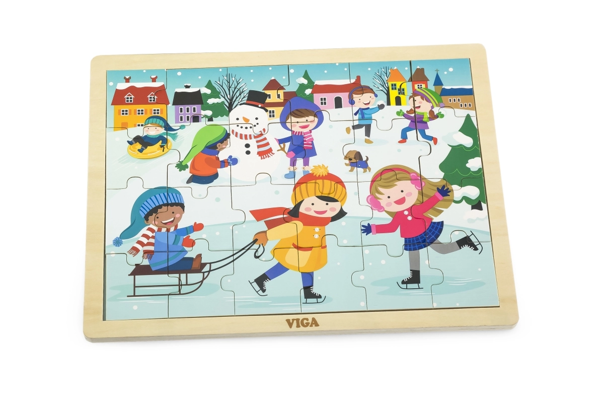 Deze houten puzzel met winterafbeelding is een uitstekende keuze voor kinderen vanaf 24 maanden. De grootte van de afzonderlijke stukjes is afgestemd op kinderhandjes en de stevige constructie zorgt voor een lange levensduur. Met 24 stukjes oefenen kinderen hun concentratie en ervaren ze plezier bij het voltooien van de afbeelding.
