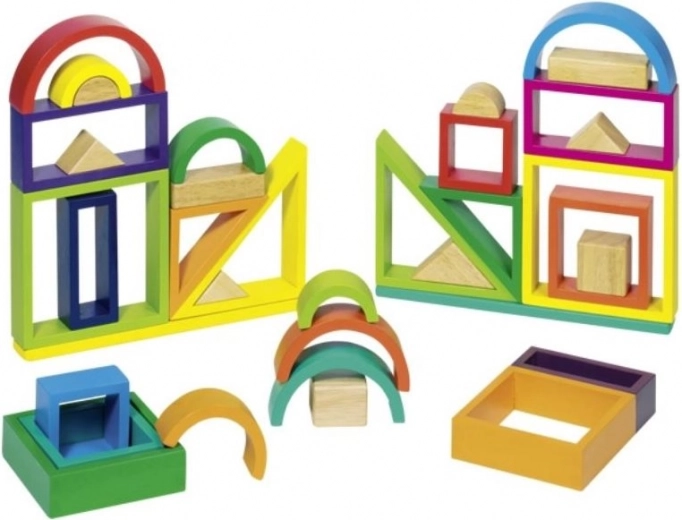 De houten Goki Regenboog-bouwset biedt kinderen eindeloze mogelijkheden om te bouwen en spelenderwijs te leren. Dankzij 38 hoogwaardige onderdelen in levendige kleuren kun je eenvoudig originele combinaties creëren die de fantasie en het visuele waarnemen stimuleren. De verschillende vormen en kleuren nodigen van nature uit tot experimenteren en ontdekken.