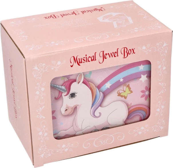 De sieradendoos wordt geleverd in een mooie doos met een eenhoorn en een regenboog – ideaal als kant-en-klaar cadeau zonder extra inpakwerk.
