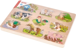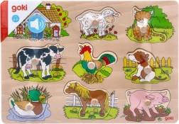Deze houten puzzel bevat acht stukken met afbeeldingen van huisdieren, die bij het plaatsen in het juiste gat een karakteristiek geluid maken. Elk stuk is voorzien van een houten handgreep, wat eenvoudig hanteren en veilig plaatsen op de basis biedt. De houten basis met nauwkeurige uitsparingen helpt kinderen om de stukken op de juiste plaats te zetten.