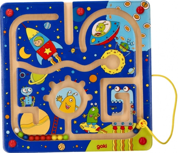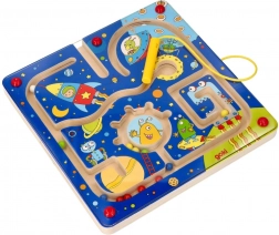 Ontwikkel de vaardigheden van uw kinderen met dit kleurrijke magnetische spel Ruimte. Het spel bevat een magnetische staaf aan een koord, waarmee uw kinderen de balletjes door het labyrint kunnen bewegen.