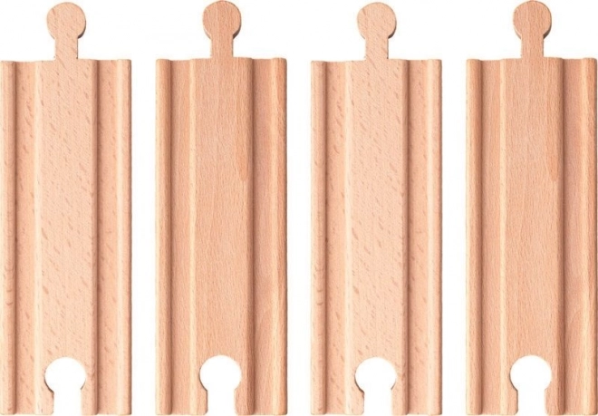 Breid je houten treinbaan uit met een praktische set van vier rechte rails van 11 cm. Deze uitbreiding is compatibel met populaire systemen zoals BRIO, IKEA en Eichhorn en helpt je om de baan eenvoudig te verlengen en nieuwe combinaties te maken. Ideaal voor kinderen vanaf 3 jaar.