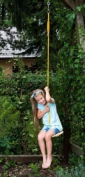 De montage gaat snel – je hangt de schotel op aan de metalen ring aan het ophangtouw. Voor soepel draaien raden we een draaihaak aan (niet inbegrepen). De totale lengte van het touw inclusief schommel is 180 cm, wat een optimale ophanghoogte biedt voor veilig schommelen.