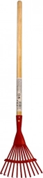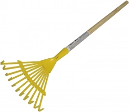 Duurzaam metalen deel voor effectief harken en een prettige houten greep voor comfortabel vasthouden, ook bij langer werken.