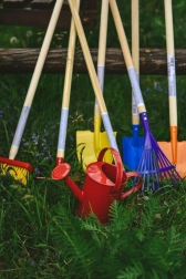 De gladde houten steel ligt goed in kinderhanden en maakt veilig hanteren tijdens het tuinieren eenvoudig.