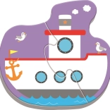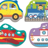 Kinderpuzzel met vervoersthema voor de allerkleinsten biedt plezier en leren in één. Bevat vier tweedelige puzzels met een boot, vliegtuig, auto en trein, die helpen bij de ontwikkeling van motoriek en probleemoplossende vaardigheden.