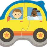 Elke puzzel stelt een ander vervoermiddel voor – auto, trein, vliegtuig en boot – en stimuleert creatief spel.
