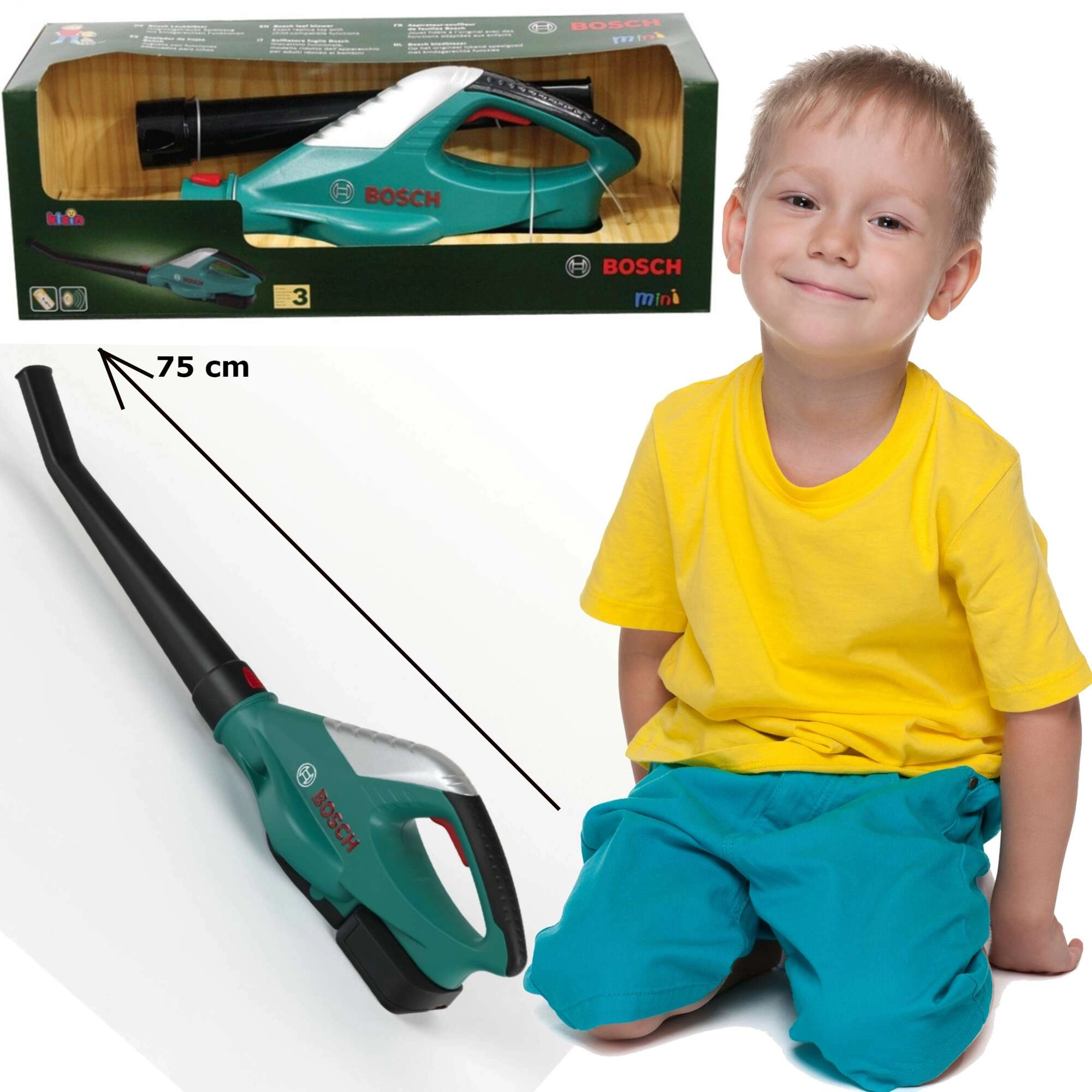 Realistische kinderbladblazer onder BOSCH-licentie van het merk Klein, ideaal voor kleine helpers vanaf 3 jaar. Heeft een ergonomische handgreep aangepast aan kinderhanden, een afneembare buis en blaast echt lucht wanneer je op de knop drukt. Een geweldige speelset om volwassenen na te bootsen en veilig in de tuin te “werken”.
