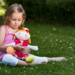 De sensorische pop Ala ondersteunt de ontwikkeling van kinderen dankzij haar interactieve elementen.