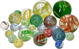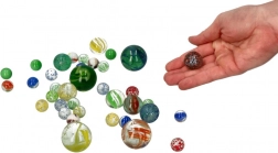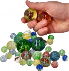 Kinderen kunnen genieten van verschillende traditionele en nieuwe spelletjes met deze glazen knikkers.