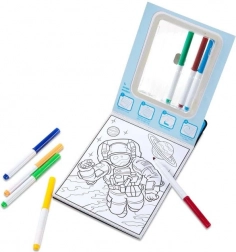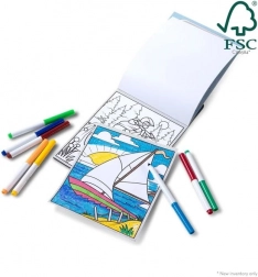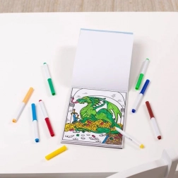 De set bevat kleurstiften die aan het blok zijn bevestigd, zodat je altijd en overal kunt kleuren – ideaal voor op reis.