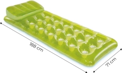 Geniet volop van de zomer met de opblaasbare Intex-matras van 188 × 71 cm in een frisse groene kleur. Dankzij de stabiele COLI-BEAM-constructie, twee luchtkamers en duurzaam PVC biedt hij uitstekende stabiliteit, comfortabel liggen en een lange levensduur. Ideaal voor in het zwembad, meer of de zee, met een draagvermogen tot 100 kg en een reparatiepatch in de verpakking.