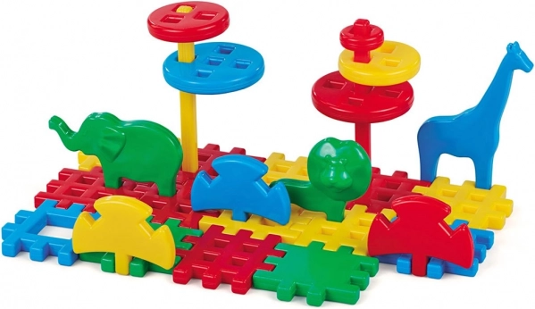 De constructieblokken Marioinex Mix 30 Wafels zijn ontworpen om zo comfortabel en veilig mogelijk voor kinderen te zijn. Ze zijn gemaakt van flexibel, zacht en prettig aanvoelend materiaal. De vorm van de blokken is perfect aangepast aan kinderhanden, en de gebruikte kleuren zijn zacht en aangenaam voor de ogen. Met de set ZOO kunnen kinderen een kleine dierentuin bouwen, waar Olifant, Leeuw, Giraf en Neushoorn wonen. De blokken zijn gemakkelijk in elkaar te zetten en hebben opvallende kleuren, wat de verbeelding prikkelt en het mogelijk maakt om iets geweldigs te creëren. De set bevat 30 onderdelen: - 4 x diertjes - blokken