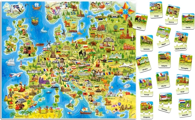 Ontdek Europa spelenderwijs met de educatieve puzzels van Castorland! De set bevat een kaart van Europa van 180 stukjes met een formaat van 46 × 60 cm en daarnaast 32 quizstukjes voor extra oefenin... Meer tonen