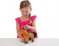 Het pluchen paardje met aangename textuur, groen zadel en stevige details is ideaal om te knuffelen en mee te spelen.