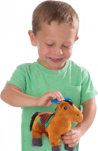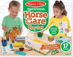 Deze verzorgingsset met een zacht pluchen paardje is het ideale speelgoed voor kleine paardenliefhebbers. Inclusief accessoires zoals een borstel, spons, wortel en voederbak, die realistisch boerderijspel en het leren verzorgen van dieren ondersteunen. Dankzij de vrolijke kleuren en de prettige materialen zullen kinderen er dol op zijn.