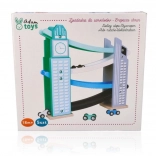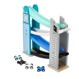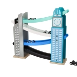 Onze houten racebaan is ontworpen om te lijken op iconische stadsgebouwen, inclusief een toren met klok. Hij is gemaakt van hoogwaardig hout en biedt meerdere niveaus met diverse gekleurde hellingen in blauw, zwart en wit. Kinderen hebben plezier met het loslaten van kleine gekleurde autootjes van boven naar beneden. De baan biedt niet alleen vermaak, maar bevordert ook de fijne motoriek en leert over natuurkundige principes zoals zwaartekracht en snelheid.