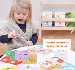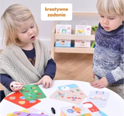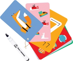 De set bevat kleurrijke illustraties vol humor die kinderen inspireren tot creatieve activiteiten. De kaarten maken herhaald tekenen en wissen mogelijk, wat een fantastisch educatief cadeau is voor kleuters. Ideaal ook voor onderweg met een kind.
