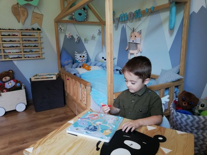 De robuuste houten basis, transparante afdekking en het koordje aan het stokje zorgen voor een lange levensduur en comfortabel gebruik. Het magnetische doolhof ondersteunt de ontwikkeling van fijne motoriek, oog-handcoördinatie, kleurherkenning en logisch denken – een ideale keuze voor het eerste educatieve speelgoed.