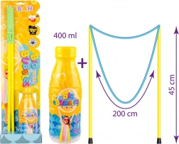 Het koord is geschikt voor beginners en professionele bellenshow-artiesten, is zuinig in verbruik en biedt een maximale spreiding tot 200 cm met comfortabele handgrepen van 45 cm. De TUBAN-oplossing is vervaardigd in Polen en voldoet aan de norm PN-EN 71 voor speelgoedveiligheid.