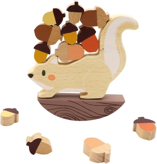 De vrolijke eekhoorn bereidt zich voor op de winter – kan hij alle eikels dragen? Neem om de beurt een zet met je tegenspeler en leg de stukjes zo neer dat de eekhoorn op de wankele basis niet kantelt. Eenvoudige regels en spanning bij elke beurt maken van dit houten balanseerspel een geweldige keuze voor kinderen vanaf 3 jaar.