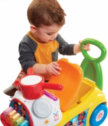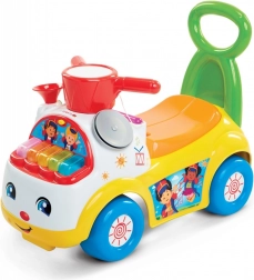 Op het frontpaneel vind je een klavier met twee modi: weergave van 5 vrolijke marsmelodieën en vrije modus voor eigen muzikale experimenten. De praktische opbergruimte onder het zitje biedt plaats aan spulletjes die kleine rijders altijd bij zich willen hebben.